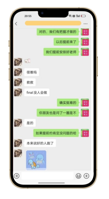 焦虑万分的小田向其他机构寻求帮助,但因为时间紧迫,所有机构都拒绝了他。最终,小田找到了我们。我们迅速为他安排了最专业的老师,经过及时的应对与精心准备,帮助小田顺利通过了期末考试,让他在绝望中重拾信心,顺利保住了学业。