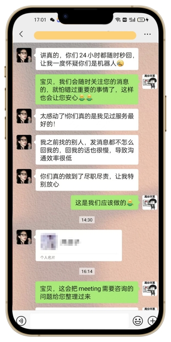 在后面的服务和沟通中,我们全程24小时在线,消息秒回,以至于让他觉得我们是机器人在线,都不休息的。